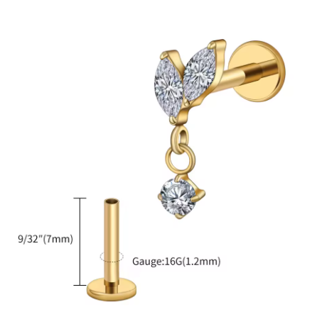 The Gina Stud earring is crafted from titanium and boasts a stunning stone shape. Sold as a single earring, it features a Push style and a thickness of 18G with a length of 6mm.